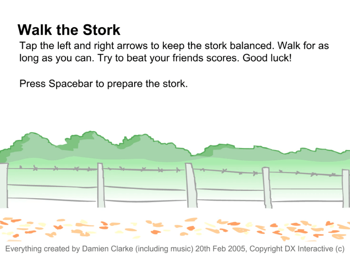 어려운 난이도를 자랑하는 황새 걷기 게임은 말 그대로 걸어가는 황새를 컨트롤하여 넘어지지 않게 균형을 잡고 최대한 멀리 가는 게 목적입니다. 앞뒤로 고꾸라지기 시작하는데 좌우 방향키로 넘어지는 방향의 반대쪽으로 조절해 주시면 됩니다. 처음에는 천천히 걸어가다가 조금씩 속도가 빨라지게 되는데 점점 더 새의 균형을 바로잡기가 어려워집니다. 이때 빠르게 반응하는 것이 중요한데 많은 연타를 남발하게 되면 위험할 수 있으니 주의해야 합니다. 여러 번 도전하여 자신의 최고 기록을 갱신해 보세요.