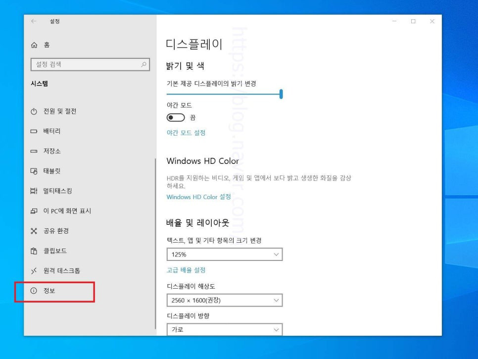 14. 시스템 페이지로 넘어왔다면 여기에서는 좌측 하단에 위치하고 있는 정보 항목을 선택하여 들어가 줍니다.