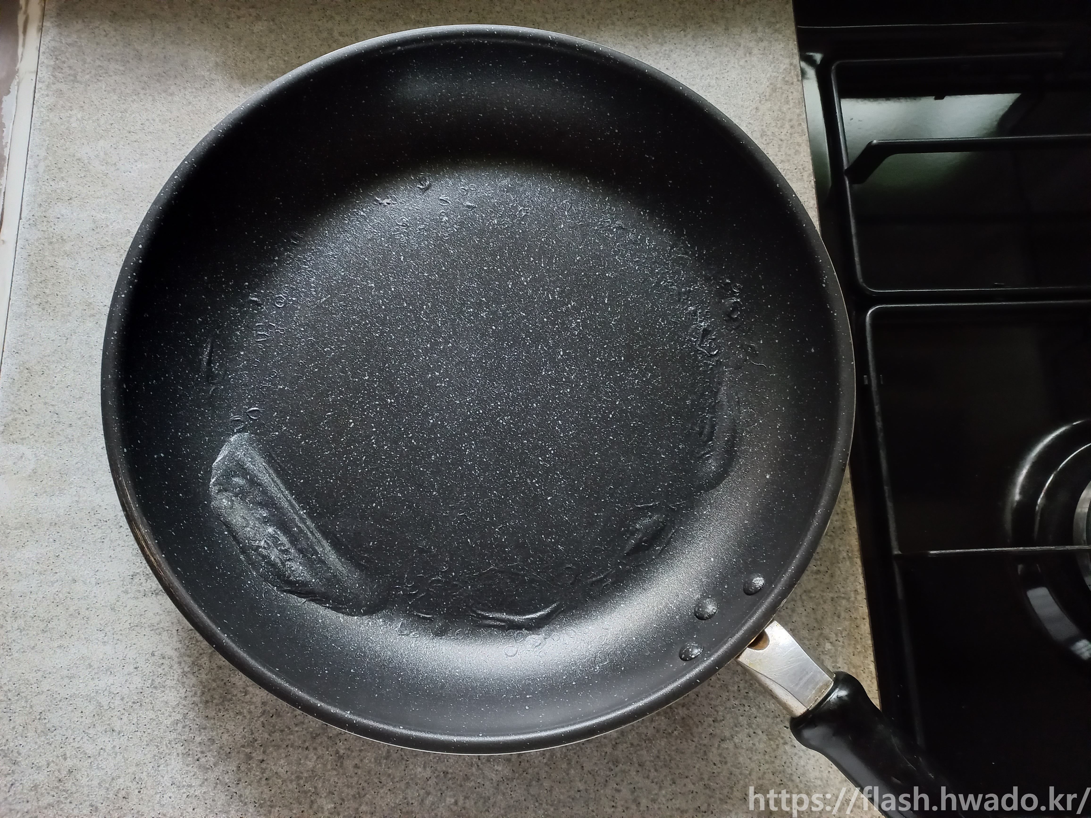 사진 속 이미지는 마블 코팅 프라이팬이 식었을 때의 사진이다.